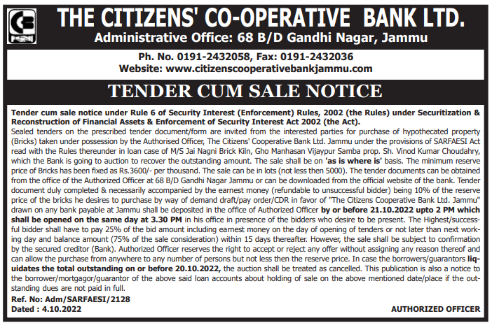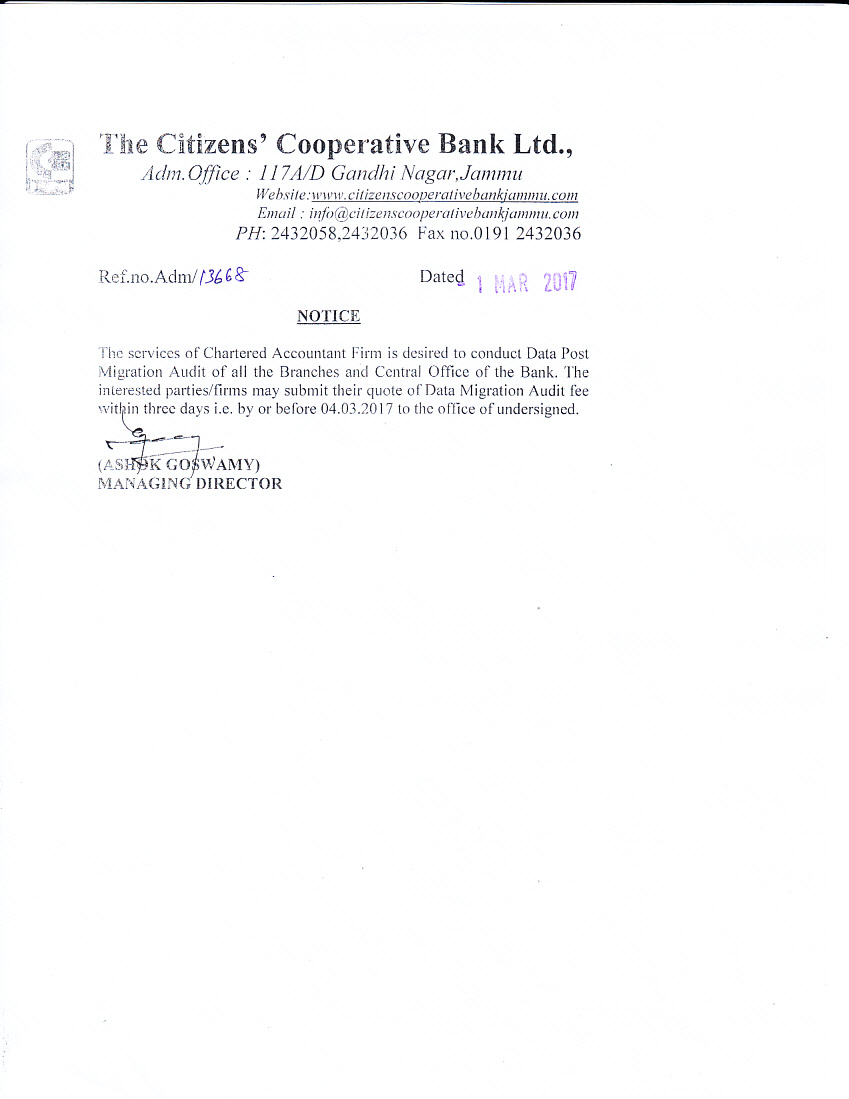 Click Here for Tender Document Of Citizen Coorporative Bank
