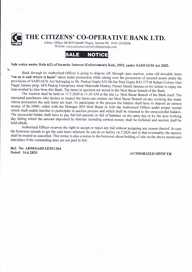 Sale Notice